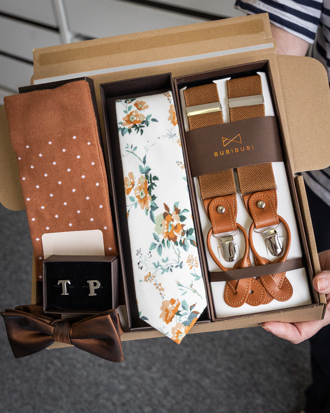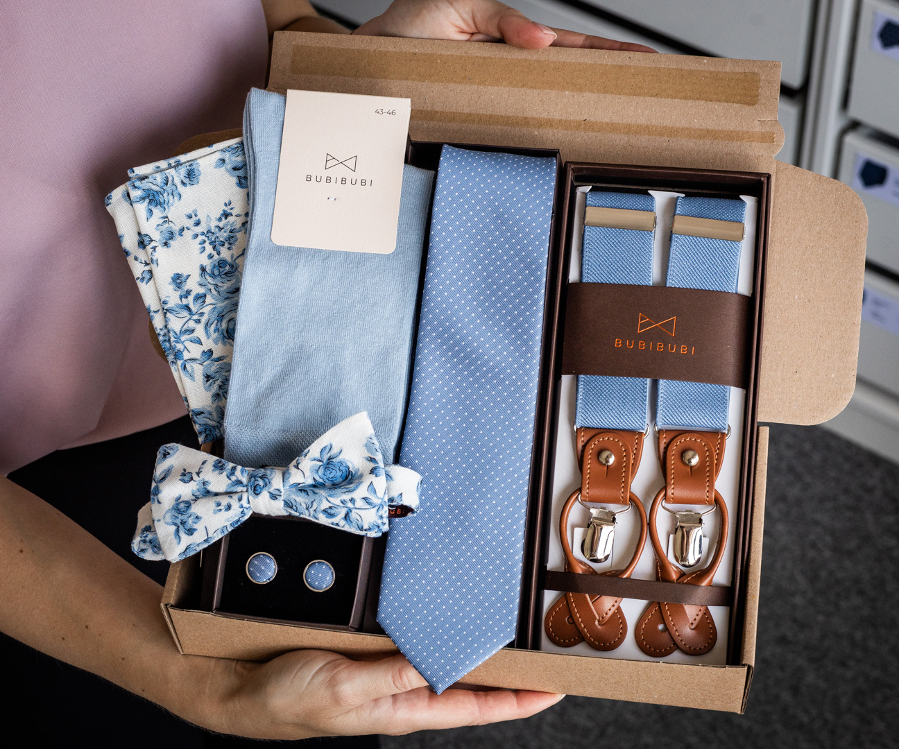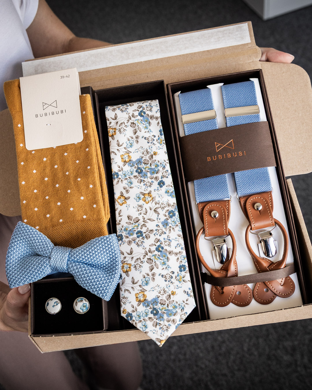 jsme Peter a Anička a stojíme za značkou Bubibubi. Bude to znít trochu jako klišé, ale náš příběh začal momentem, když jsem nemohl sehnat vhodný kapesníček do saka na svatbu. Anička mi jeden ušila ze staré látky na šicím stroji, který jsme měli doma. No a od té doby uběhlo 12 let a nám se z nevinného nápadu povedlo postupně vybudovat malou rodinnou firmu, která přináší pro ženichy a svatební hosty stylové a elegantní kravaty, kšandy, motýlky a spoustu dalších doplňků.